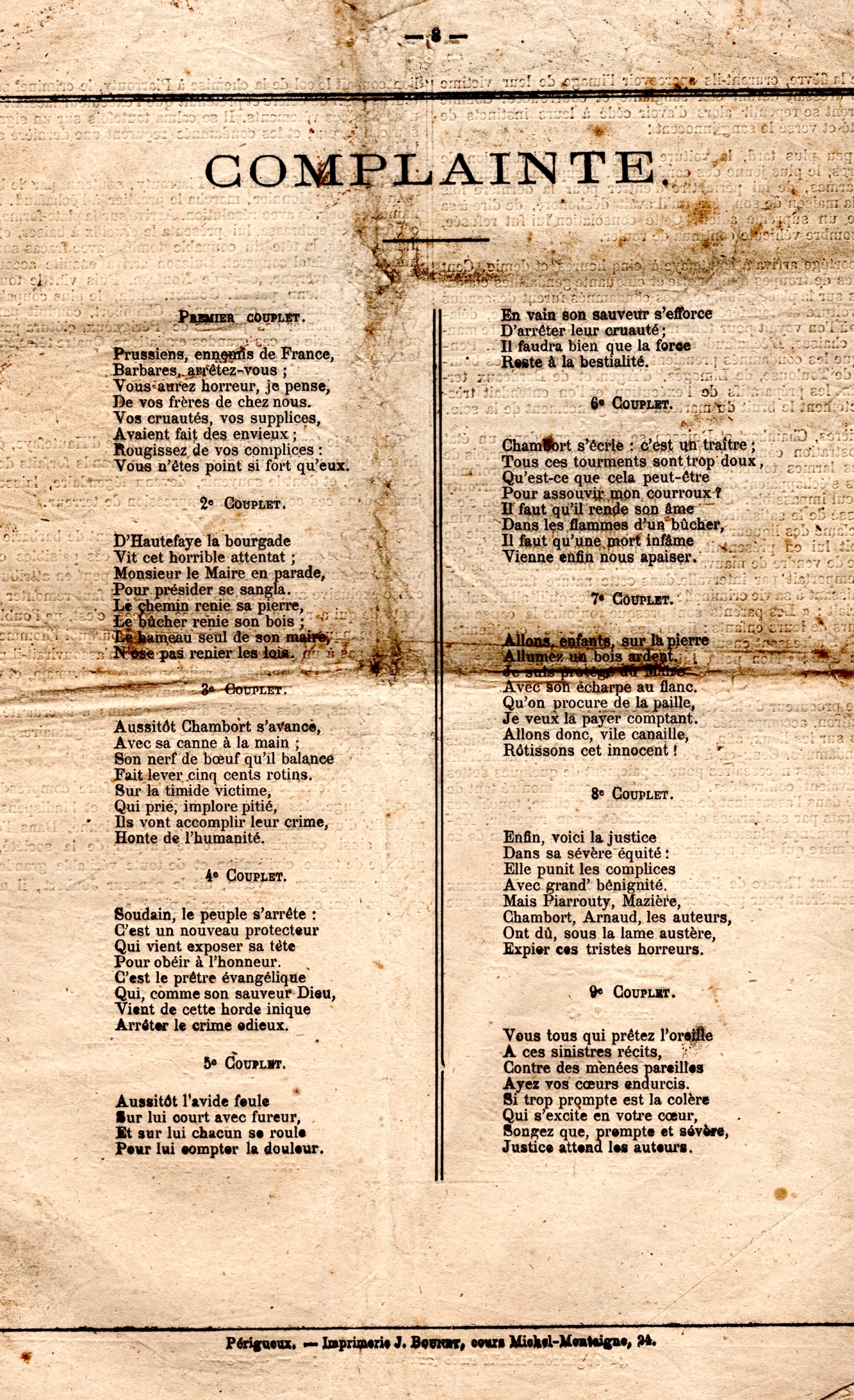 Complainte conclusive d'un canard de 8 pages vendu après l'exécution des quatre condamnés à mort, nommés dans le texte.